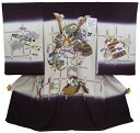 紋入れ・フードセットプレゼント!送料無料♪正絹初着(お宮参り着物・産着)「黒地に宝船と兜」【10P03Dec16】