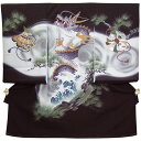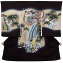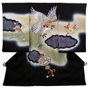紋入れ・フードセットプレゼント!送料無料♪正絹初着(お宮参り着物・産着)男の子「黒地に鷹と松と鼓」