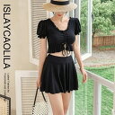 システム自動連結により、年中無休24時間対応で、委託先倉庫(アマゾンジャパン合同会社)から、平常時2日以内(セール期間中や12月等の混雑時を除く)に、ヤマト/日本郵便等にて発送ビキニ 3点 セット 水着 スカート フリル スイムドレス Uネック 半袖 パッド入り ワイヤーなし レディース EF1 フリーダ