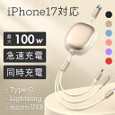 1本で3台+USB-Aにも変換。100W&3色、どこでも超高速充電 iPhone15 iphone16 iphone17 充電ケーブル タイプC 送料無料【100W超高速充電&USB-A変換アダプター付き】3in1 充電ケーブル 3台同時充電 Type-C/iPhone/Micro USB 対応 編み込みナイロン 高耐久 断線防止 スマート分流 Type-C to Type-C Type-C to Lightning