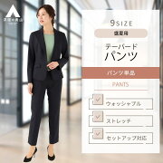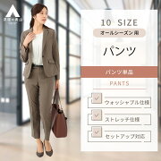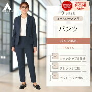 (商品のお直しがある場合は、5日〜8日) 商品のお届けは、発送後1日〜3日後の到着となります。 【ご家庭用で洗えるウォッシャブルパンツ】 ご家庭用洗濯機や、シャワーで水洗い出来るセットアップセミフレアパンツです。シャワーで簡単にシミなどを落とせるので、お手入れも簡単。生地にはストレッチ素材を使用し、動きやすく、快適な着心地です。股下部分には張り裂け軽減の補強ステッチを採用、安心して着用いただけます。 5号から21号と豊富なサイズ展開で、ご自身に似合うサイズが選べます。 【機能/仕様】 ■セットアップ規格※ジャケット、スカートは別売り 単体でも着用可能な共生地ジャケットと組み合わせれば、スーツとして着用可能。 ■ウォッシャブル ご家庭で洗濯可能なウォッシャブル仕様、ネットに入れて洗濯機またはシャワークリーンの2通りの洗濯可。 ■ストレッチ シワができにくく窮屈感を軽減させる伸縮性のある素材を使用 ■股下補強ステッチ 股下部分に張り裂け軽減の補強ステッチを採用 【セットアップ対応商品】 テーパードパンツ: PK1510-Aタイトスカート: PS1510-A※ジャケット・ボトムスは、上下別自分にあったサイズをお選びいただけます。 ※セットアップ対応商品は在庫切れの場合がございます。 【コーディネートポイント】 ベーシックな正統派スーツには、清潔感のあるホワイトブラウスの組み合わせで、きちんと感をしっかり見せるコーディネートを。 【商品に関するご注意】 ■平置き・メジャーでの採寸の為、素材や仕様等により実際の商品とサイズ表に若干の誤差が生じる場合がございます。 ■ブラウザやお使いのモニター環境、室内外等の撮影時の環境下での光加減により、実際の商品と掲載画像の色味が異なる場合がございます。予めご了承ください。 【モデルサイズ】 身長:170cm 着用サイズ:9号 | 仕様 | セミフレアパンツ ノータック 股下補強ステッチ セットアップ対応 |