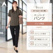 ご家庭用洗濯機や、シャワーで水洗い出来るセットアップセミフレアパンツです。シャワーで簡単にシミなどを落とせるので、お手入れも簡単。生地にはストレッチ素材を使用し、動きやすく、快適な着心地です。股下部分には張り裂け軽減の補強ステッチを採用、安心して着用いただけます。 5号から21号と豊富なサイズ展開で、ご自身に似合うサイズが選べます。