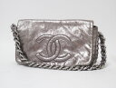 シャネル チェーンショルダーバッグ キャンバス ステッチ エナメル ゴールド金具 美品 【中古】