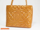 シャネル エナメル 復刻トート トートバッグ オレンジ シルバー金具 美品 【中古】
