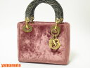ディオール レディディオール ミニハンドバッグ ベロア ブラック ピンク ゴールド金具 美品 【中古】