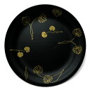 かろやかな宗寛盆・・・漆器:黒目はじき宗寛盆8寸・秋草文箔絵・守田漆器・山本哲《大皿・24.0cm》