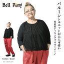 バルーンシルエットが大人可愛いお洒落なプルオーバー♪ 【ベルポニー】 【送料無料】 【39ショップ】 【在庫限り】 【訳あり】異素材ドッキング バルーン プルオーバー レディース トップス 七分袖 Tシャツ 春 夏 秋 無地 大きめ ゆったり ブラック クロ 黒 40代 50代 60代 Bell Pony ベルポニー