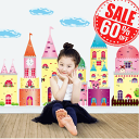 模様替えは簡単が一番♪誰でも楽しめるインテリアデザイナー ギフト60%OFF ウォールステッカー おしゃれ 子供 夢を育むお城 ステッカー ドリームキャッスル インスタ映え SNS おしゃれ 木 寝室 町並 プレゼント グッズ ユウランプ