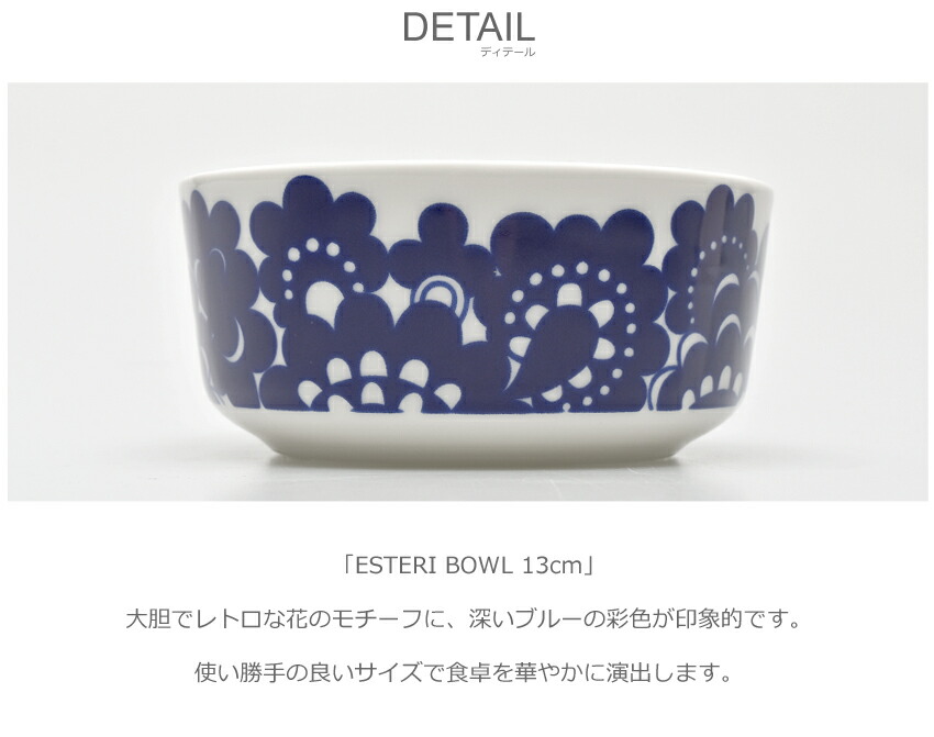 ARABIA アラビア 大胆でレトロな花のモチーフがかわいい。 北欧食器 フィンランド ギフト プレゼントにアラビア エステリ ボウル 13cm 13センチ (arabia esteri bowl 1024338) 皿 食器 花柄 ボール 深皿 キッチン 食洗機対応 ブルー 青 誕生日プレゼント 結婚祝い ギフト おしゃれ 【ラッピング対象外】