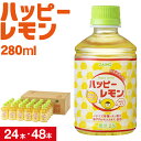 レモン水 ミニボトル 1日分のビタミンC入り イタリアシチリア産レモン果汁を使用し 爽やかなレモン風味を感じられるスッキリとした味わいの飲料 クエン酸レモン水 ミニボトル ハッピーレモン 280ml 24本/48本 カロリーオフ ペットボトル ホット コールド 兼用 送料無料 シチリア産 有機レモン果汁 財宝 温泉水 飲み物 ソフトドリンク ギフト プレゼント